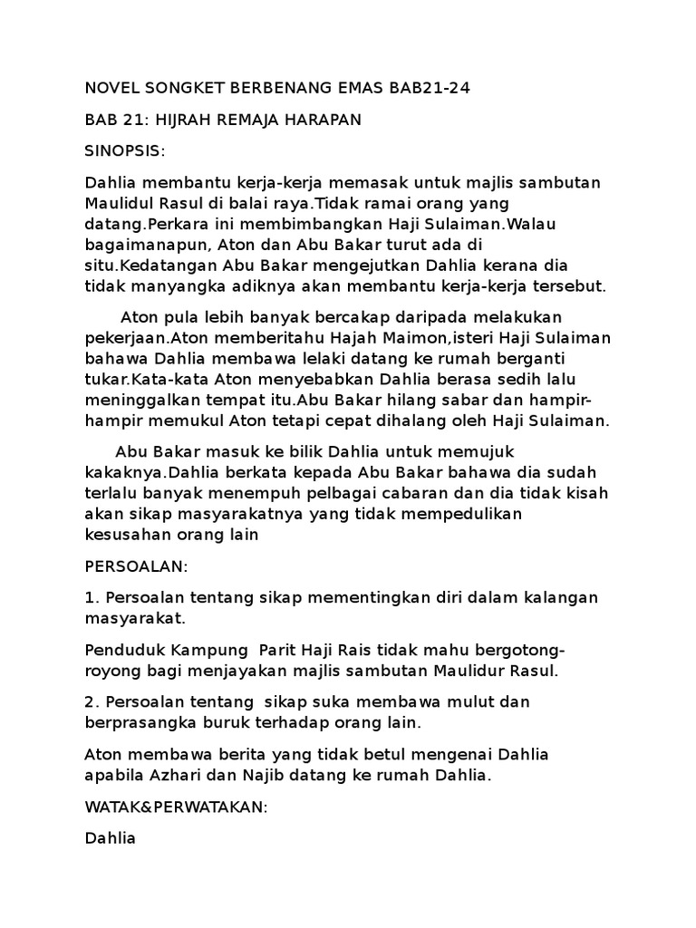 Novel Songket Berbenang Emas Docx Novel Songket Berbenang Emas Khairuddin Ayip Sinopsis Bab Demi Bab Bab Sinopsis Dahlia Dan Rakan Rakannya Siti Course Hero