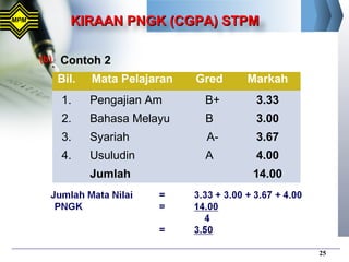 Contoh Pengiraan PNGSPNGK Syarat Meneruskan Pengajian. This tool can be used to calculate your Semester Grade Point Average SGPA and Cumulative Grade Point Average CGPA. Cara pengiraan pointer stpm.